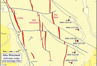 Assay results are now available for a further 31 holes, AMD-115 to AMD-145, and the collar details of these holes are provided in Table 1. The holes variously tested the Fin Vein, the JVZ structure, the CVZ and the Valley Vein zone ("VVZ") in the southern and central eastern areas of the Abu Marawat deposit (Figure 2).