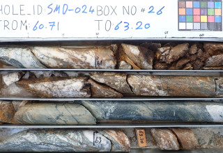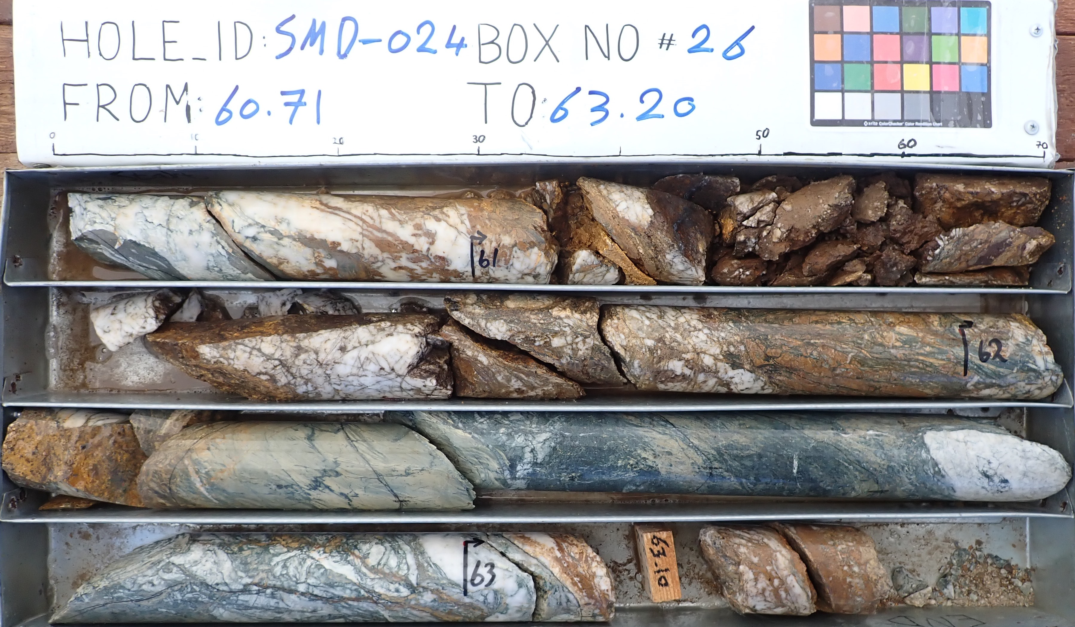 Figure 3: Uncut drill core from hole SMD-024, 60.71-63.20m depth