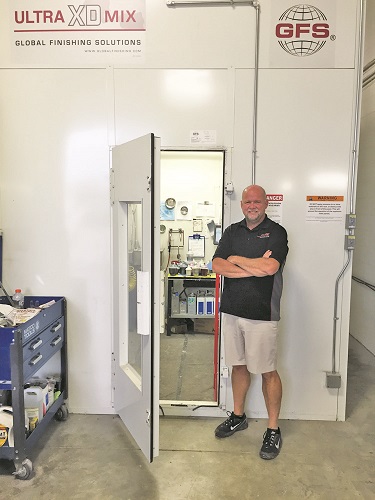 Another piece of equipment on his list to buy was a GFS Ultra® XD mix paint room. Although smaller than the mix room he used at Baxter, he said it is the perfect size for the painter in his shop to hold all of the products needed for a job and allows him to mix any color on site.