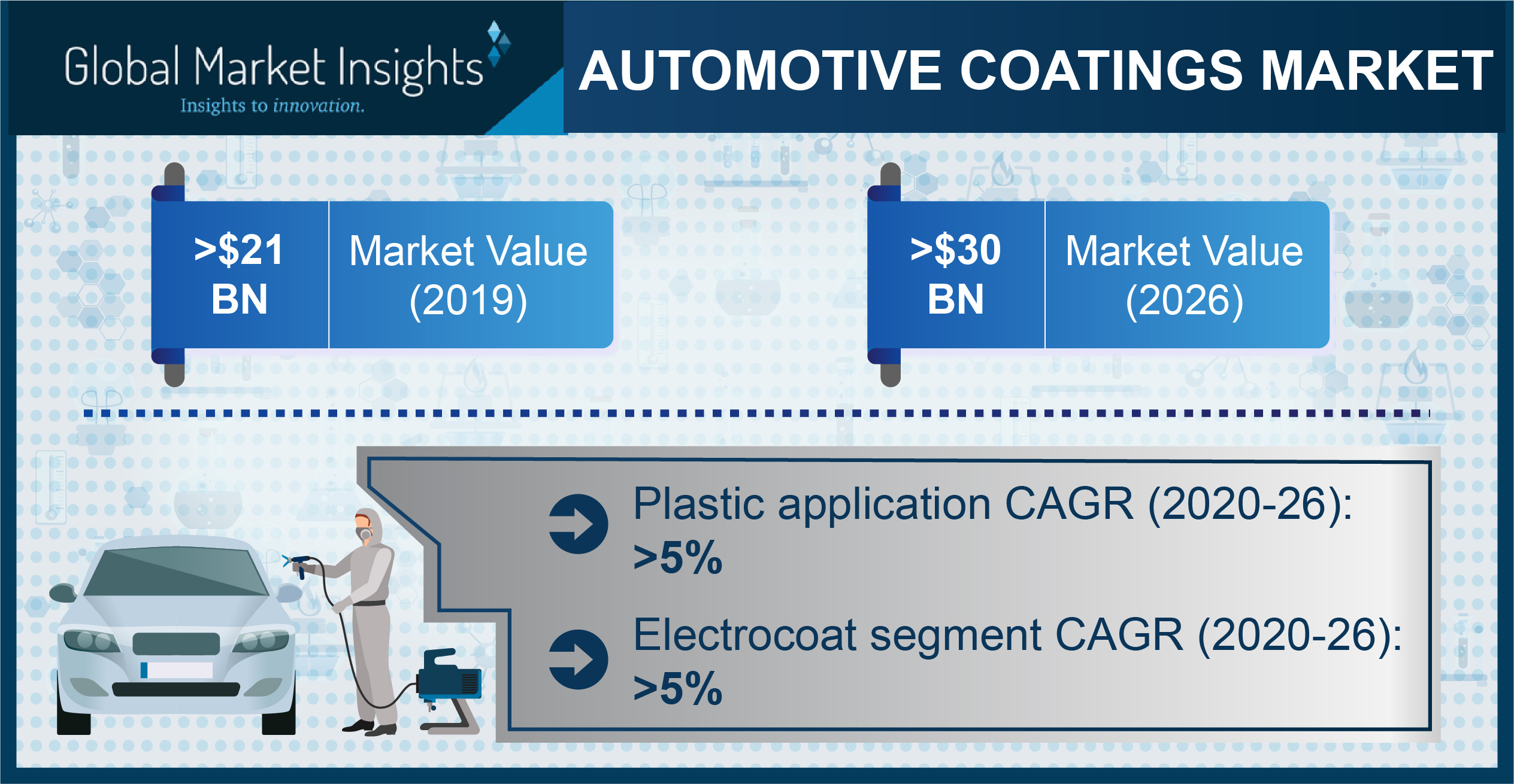 SELBYVILLE, Del., August 13, 2020 (Newswire.com) - According to the new Global Market Insights Inc., report, the automotive coatings market was estimated at $21 billion in 2019 and anticipated to surpass an overall valuation of more than $30 billion by 2026, registering a CAGR of 5% from 2020 to 2026. The report offers highly detailed market estimations & size analysis, significant investment pockets, prominent winning strategies, opportunities & drivers, shifting market trends, and competitive scenarios.