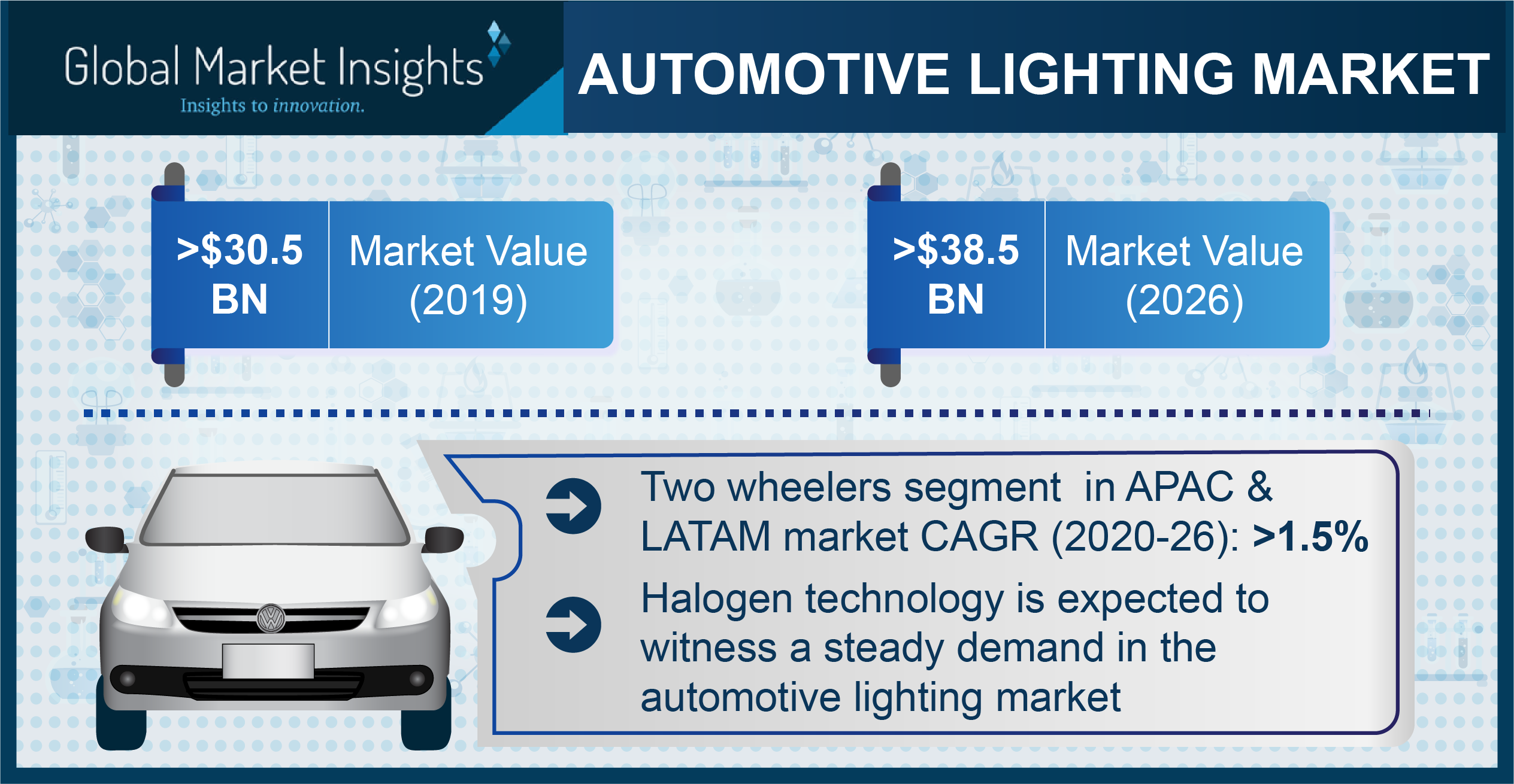 SELBYVILLE, Del., August 5, 2020 (Newswire.com) - ​Global Market Insights, Inc. has recently added a new report on the automotive lighting market which estimates the market valuation for automotive lighting will cross US$ 38.5 billion by 2026. Continuous innovation and introduction of new products along with proliferation of automotive lighting solutions with intelligent sensor technologies in cars and commercial vehicles is anticipated to drive the industry growth.