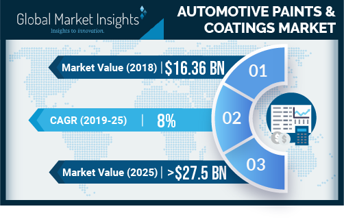 Automotive Paints & Coatings Market to Register Substantial Growth of 8% to 2025: Global Market Insights, Inc.