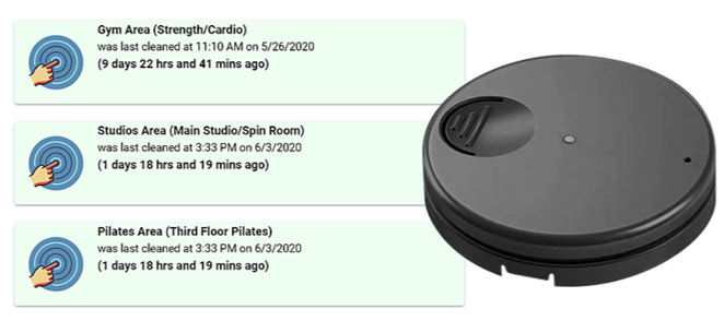 A Button Logging device can be assigned to a specific piece of equipment, a group of items, an area or an entire room. Cleaning staff activate the button as soon as they have completed disinfection of the designated area or piece of equipment. Residents can check the status of all monitored areas using an app or viewing the data on a nearby display. When coupled with other Aware solutions, such as Fitness Center Monitoring, management can direct cleaning personnel to areas or equipment that is used most frequently.