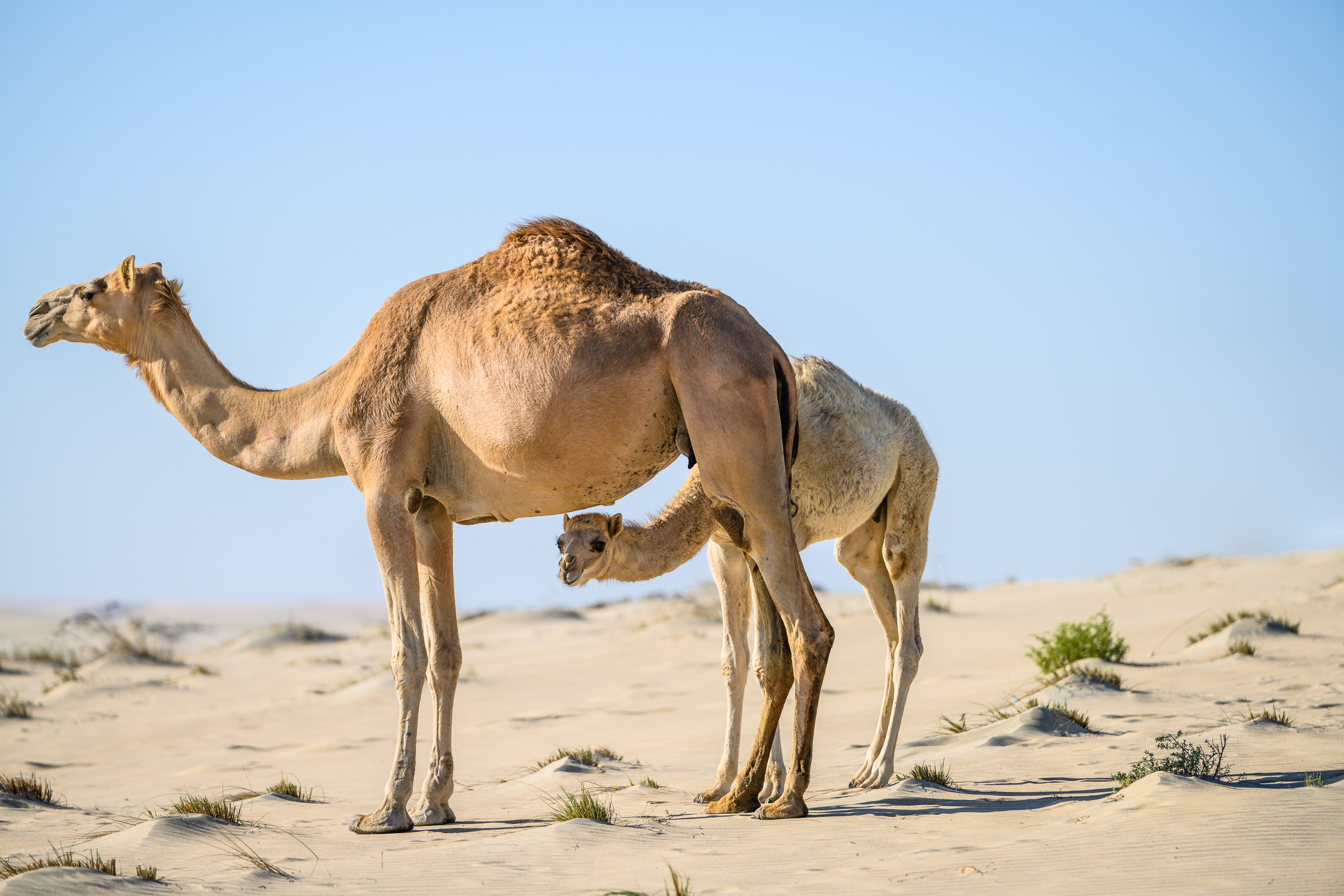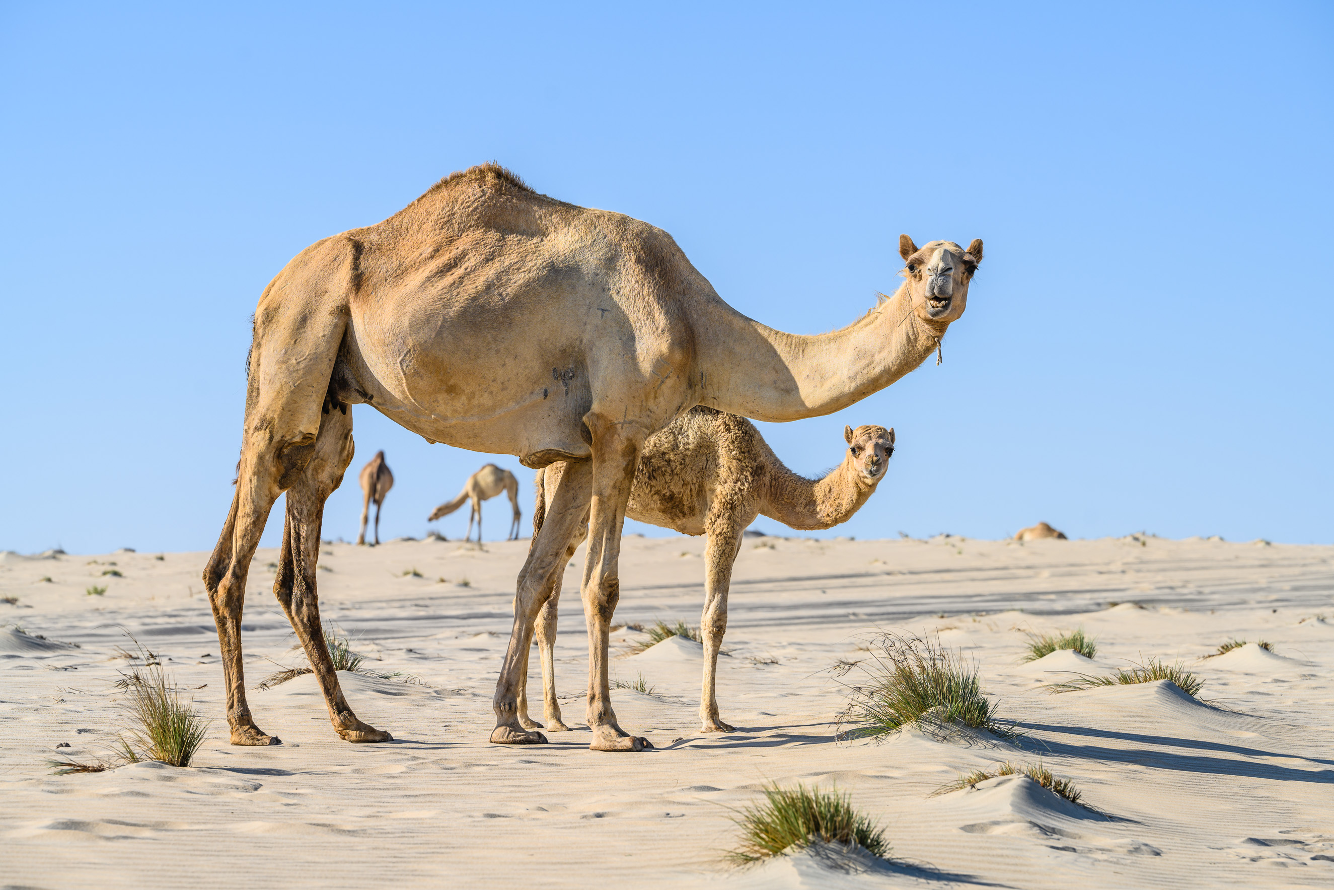 Camels have graced the Qatari deserts for centuries, having been introduced to the country by the nomadic Bedouin tribes, and are an important part of Qatar's culture and heritage. Initially the only mode of land transport, these sturdy animals are perfectly adapted to exploring the desert due to their famed skill of retaining water. Camels can survive for a week or more without water and last for several months without food.