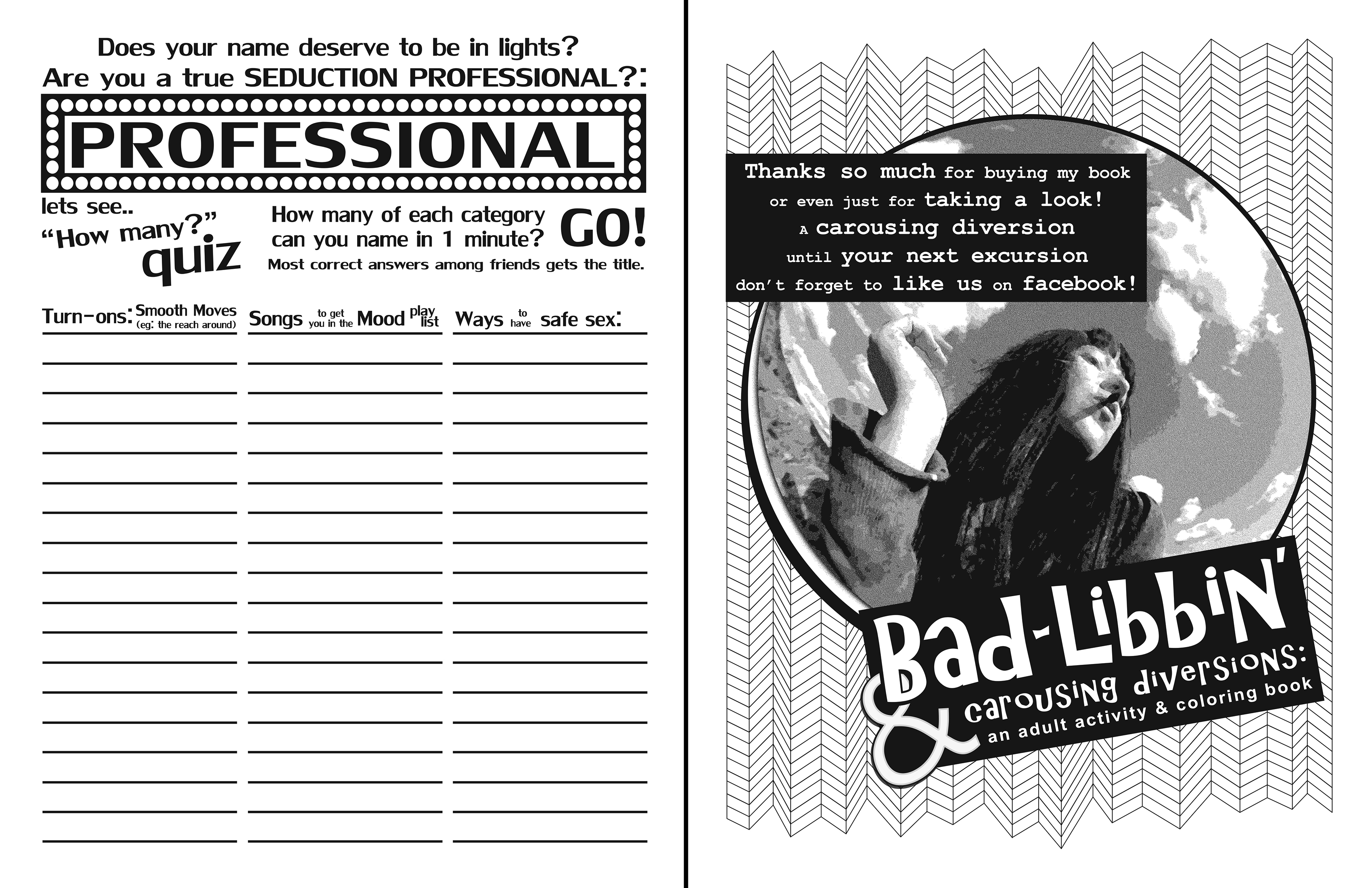 “Bad Libbin' & Carousing Diversions: an adult activity & coloring book” is available now threw January 17, 2016 for pre-sale with a estimated delivery date of March, 2016. Michelle only needs to pre-sell 770 books to reach her goal of $10,000. Her campaign to #supportdirtyminds encourages adults to embrace their love of coloring and also smart, sexy, adult humor!