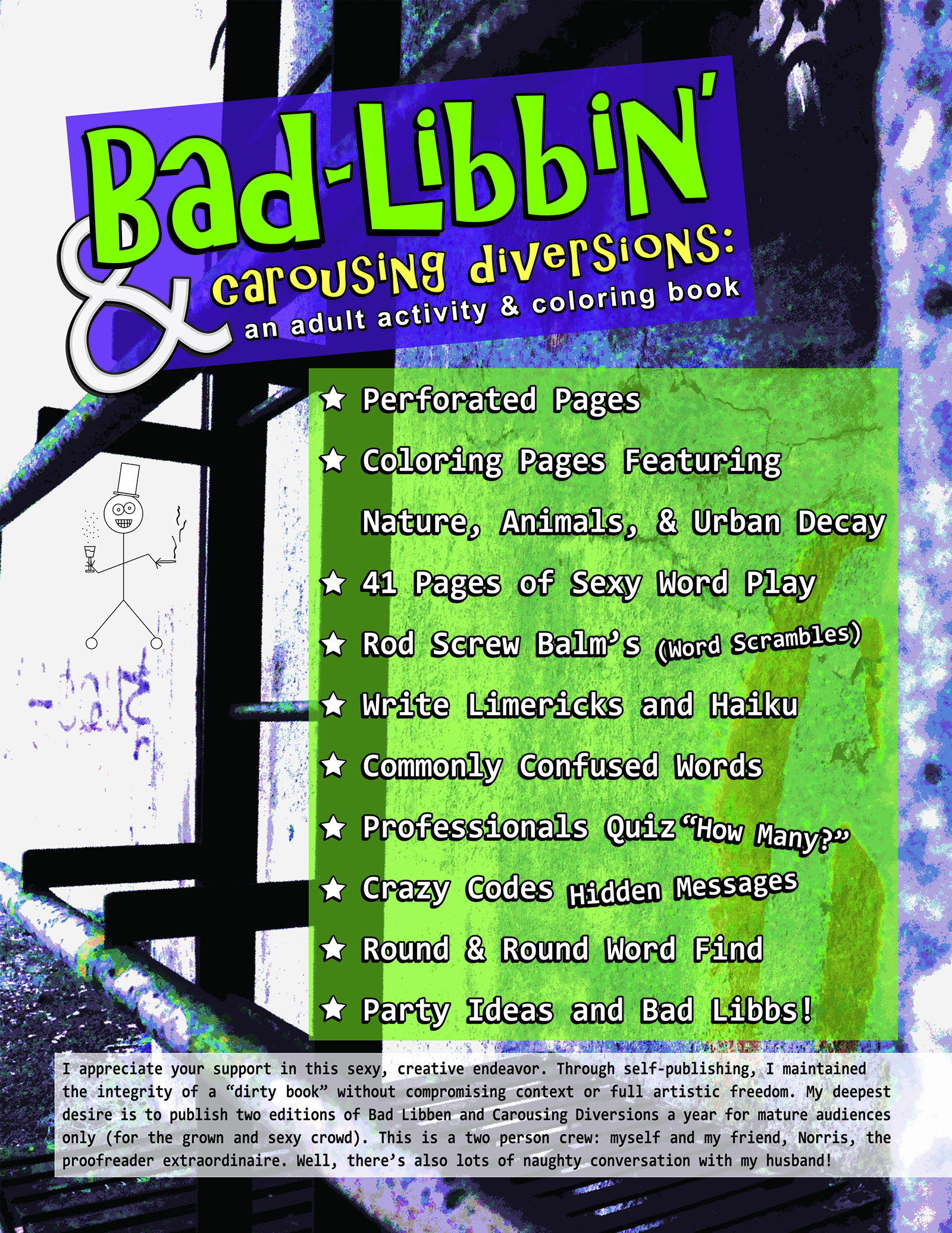 Bad Libbin' & Carousing Diversions: An Adult Activity & Coloring Book 80 Pages of Coloring, Bad Libbs, Limericks, Anagrams, Crazy Codes, Commonly Confused Words, Haiku Word Finds and More