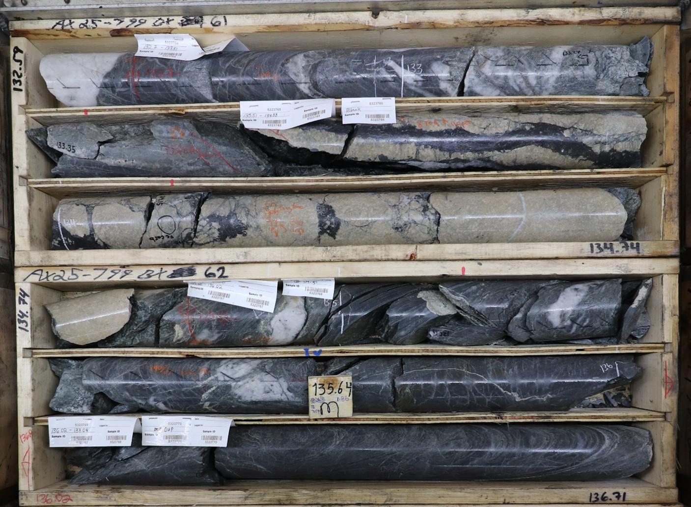 AX-25-799 - 3,408 g/t silver over 1.4m, within 352.64 g/t Ag over 13.7m