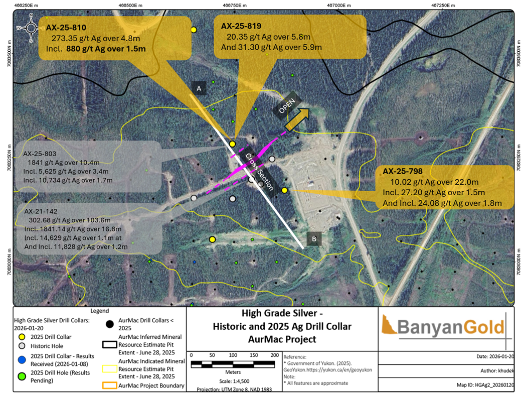 "The ongoing discovery of new high-grade Keno-style silver mineralization demonstrates that the AurMac project remains underexplored with high discovery potential," said Tara Christie, President and CEO. "Our plans for 2027 will provide meaningful catalysts for Banyan to continue to re-rate, with our upcoming MRE, PEA, and 40,000 m strategic drill program at AurMac, along with 10,000m focused on our regional targets."