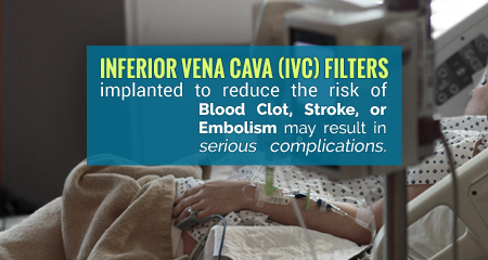 The IVC filter is a device is designed to sit inside the inferior vena cava and prevent prevent blood clots from traveling to the heart and lungs, where they could cause pulmonary embolism and other serious complications. However, serious concerns have been raised recently about the potential for the medical devices to fracture or otherwise fail, puncture the inferior vena cava, and travel to other parts of the body, possibly causing damage to nearby organs. In fact, in August 2010, the FDA issued a safety announcement warning consumers and the medical community that the agency had received more than 900 reports of adverse events associated with IVC filters, and recommended that the implants be removed within 29-54 days, to reduce the risk of device complications.