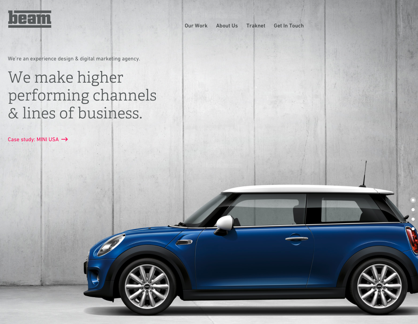 With a seasoned team of strategists, designers, writers, application architects, developers and data analysts, BEAM Interactive has served the digital needs of brands such as MINI, Boston Consulting Group, Fidelity Labs, Aruba, AMG Funds, Puma, Converse and Virgin Mobile. As a result of their wide-ranging projects, BEAM has built up a strong body of knowledge in automotive, financial services, travel, telcom/cable, B2B technology, health care, footwear & apparel and online publishing. BEAM is an award-winning full service agency, boasting awards from Cannes Lions, Webbys, Effies and more.