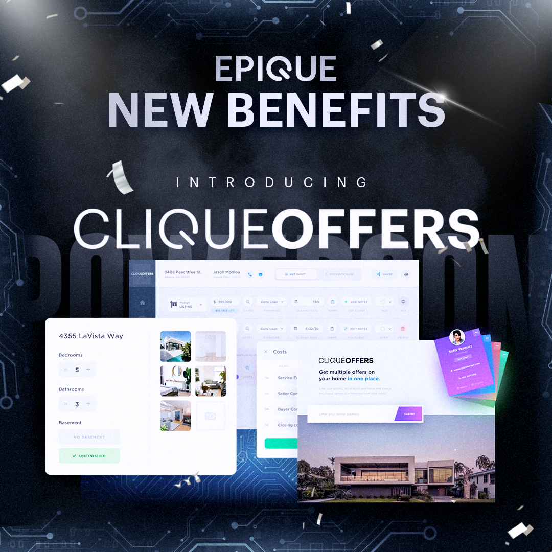 Online, April 24, 2024 (Newswire.com) - The momentum of excitement continues at PowerCON as Epique Realty unveils yet another valuable free benefit for agents: CliqueOffers. This AI-Powered software revolutionizes the selling process by instantly providing clients with the home's cash offer value and presenting valuable selling solutions almost immediately. With CliqueOffers, agents can efficiently demonstrate value to clients by submitting their home for consideration to various iBuyers and Certified cash buyers in the relevant local market.