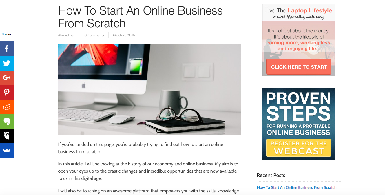 The article itself is over 2000 words long and covers how we got to where we are today, in terms of the Internet and our economy. You can find the article at http://benguonline.com/how-to-start-an-online-business-from-scratch.