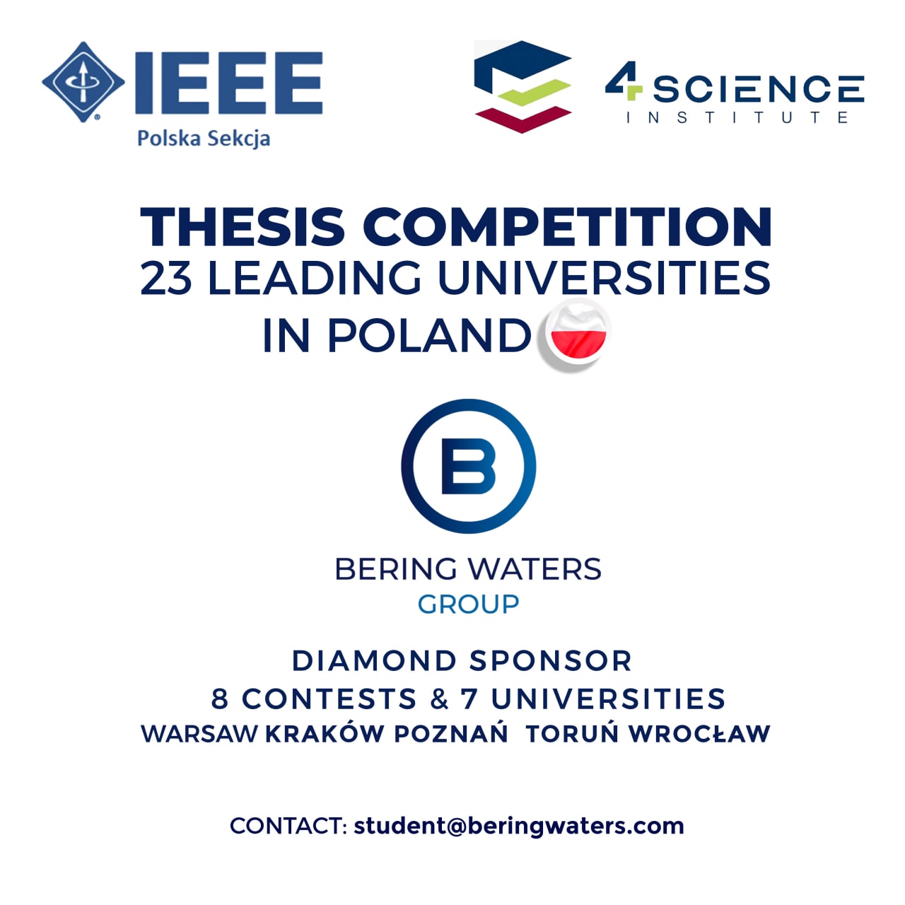 HONG KONG, May 10, 2022 (Newswire.com) - Continuing its work to build up Poland's blockchain sector, Bering Waters University, a program of Bering Waters Group, is partnering with the 4 Science Institute in a diploma thesis competition "Engineer 4 Science 2022" targeting leading local universities and organized under the patronage of IEEE (Institute of Electrical and Electronics Engineers) Poland Section, GovTech Poland, and Alumni Association of the Faculty of Electronics and Information Technology at Warsaw University of Technology.