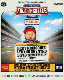 Produced by Medium Rare, Full Throttle Festival is engineered as a fully integrated fan experience, blending headline musical performances, live comedy, immersive brand activations, food, beverage, and NASCAR culture into a single, all-night indoor festival environment on the eve of the DAYTONA 500. Much like how Mando works overtime Bert will be hosting, performing stand-up, and driving the night's signature "anything can happen" energy with some of the biggest names in music. Full Throttle is the place for fans to be the night before the Daytona 500. Full Throttle Festival takes place Friday, February 14, 2026, from 7:00 PM-1:00 AM ET at the Ocean Center Convention Center in Daytona Beach, FL. Tickets are available at www.FullThrottleFestival.com.