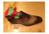 Most of Winston & Lee’s suits feature double stitched peak and notch lapels including stitching on the pants, shoulders, and areas that would not normally have stitching on men’s suit. Their suit cut, style and colorful lining also set them apart from other mainstream men’s suits. This added dimension is usually found in very expensive suits. The company also features a handmade shoe collection, including some exotic leather and studded shoes available in sizes 7 to 16.