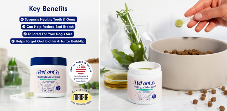 - PetLab Co. ProBright Advanced Dental Powder - easy-to-use powder formulated to improve a dog’s dental health without daily brushing