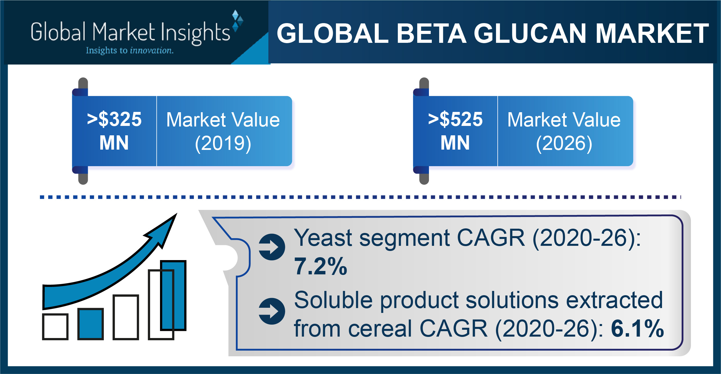 SELBYVILLE, Del., September 10, 2020 (Newswire.com) - Based on Global Market Insights Inc.'s report, the Beta Glucan Market was estimated at $325 million in 2019 and is slated to exceed $525 million by 2026, registering a CAGR of 7.2% from 2020 to 2026. The report provides a thorough analysis of the major winning strategies, market estimations as well as size, main investment avenues, competitive scenarios, drivers and opportunities, and wavering industry trends.