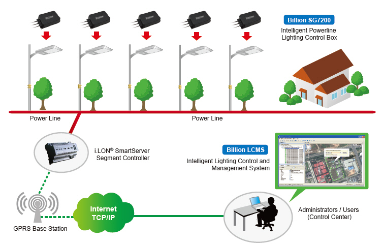 Billion LCMS solution is based on PLC and RF technologies. This automatic intelligent system enables a community to meet energy conservation objectives by adopting comprehensive street lighting solutions. The LCMS platform allows administrators to remotely manage and control the wide range of streetlight networks. It's also integrated with Google map for real-time positioning. Off-line mapping and App make it perfect for easy installation.