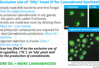 "This is a very significant milestone for Biomedican because this is the first patent issued using Yarrowia Lipolytica to produce cannabinoids. Yarrowia Lipolytica is an oily yeast that is naturally producing larger amounts of oils. Our strain can produce above 80% of oils from dry cell mass. The cannabinoids pathway relies on the same precursors which are required for oil production. Cannabis is producing cannabinoids inside oil droplets on trichomes. Enzymes which are converting CBGA into CBDA, CBCA and THCA are required for the presence of interaction of two phases: oil and water. Our yeasts have oil droplets inside which are a natural storage for cannabinoids. Basically, we are completely imitating the natural process of production inside our yeasts," says CEO Dr. Maxim Mikheev, Ph.D.