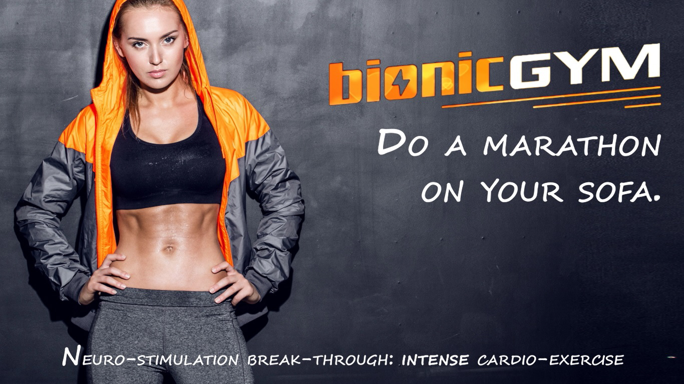 BionicGym is a wearable neuro-stimulator for intense aerobic workouts and easy calorie-burning, that works by reproducing the calorie burning effects of shivering within the muscles, and simulates the benefits and effects of running a marathon, or engaging in strenuous aerobic exercise. So a user can actually get a work-out while watching TV at night, or while sitting at their desk during the day. The device has been tested and scientifically proven to be effective. Dr. Louis Crowe states, “I've even trained for a marathon - with no running, and no pounding the joints."