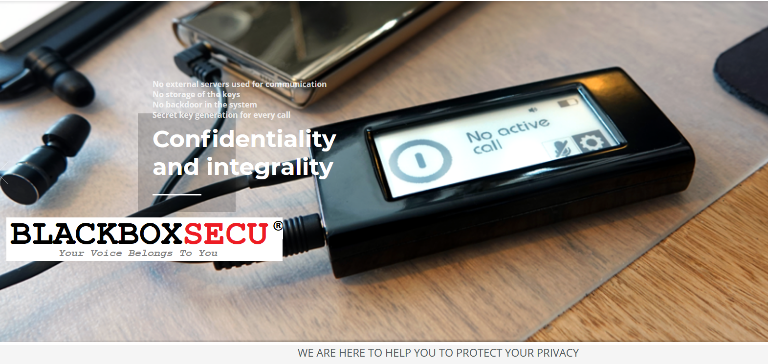Based in France’s innovation hub, Sophia Antipolis, BlackBoxSecu® provides security solutions against phone tapping and eavesdropping, for audio communication systems (smartphones, fixed lines, VoIP and radios). BLACKBOXSECU develops its encrypted voice military grade products in order to fight against snooping and industrial secrets or data leakage.