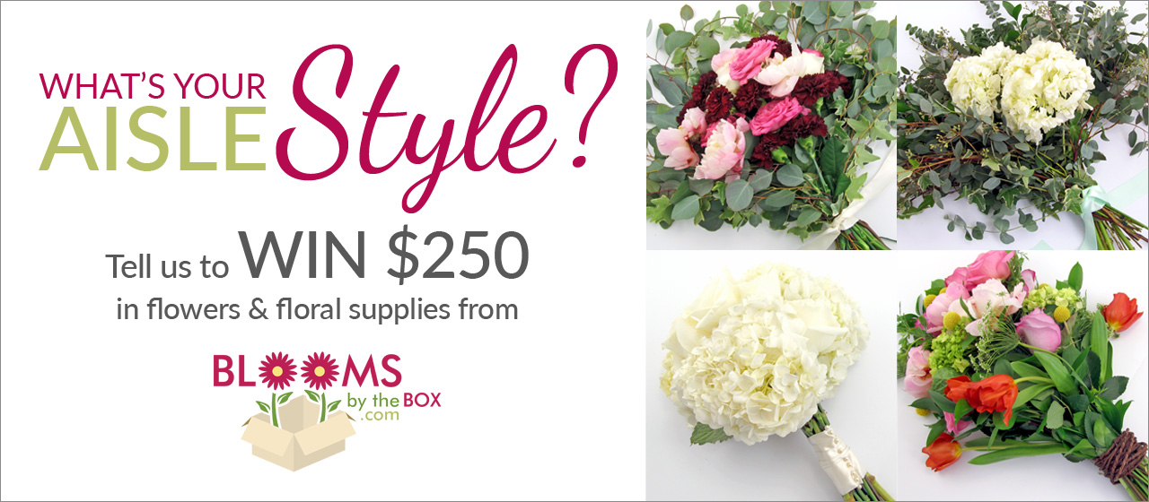 To encourage this creativity and celebrate newly engaged couples, BloomsByTheBox is hosting The 2017 “What’s Your Aisle Style?” sweepstakes starting February 23, 2017 12PM EST. The grand prize winner will turn his or her fantasy flowers into $250 worth of purchases at BloomsByTheBox.com. Entries will be accepted until March 16, 2017 12PM EST. For contest details, visit www.BloomsBytheBox.com/blog.