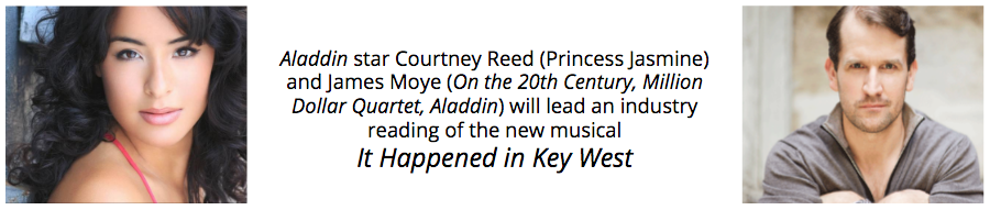 New York City, NY, August 1, 2016 (Newswire.com) - Aladdin star Courtney Reed (Princess Jasmine) and James Moye (On the 20th Century, Million Dollar Quartet, Aladdin) will lead an industry reading of the new musical It Happened in Key West in NYC on August 19.
