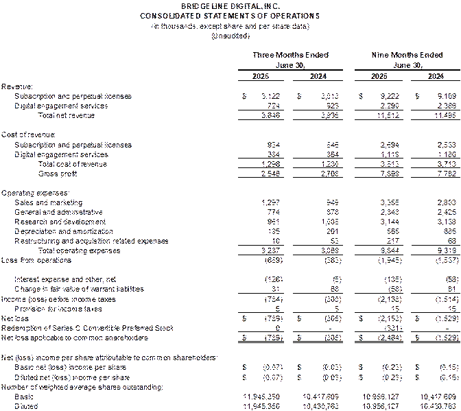 WOBURN, MA, August 14, 2025 (Newswire.com) - Bridgeline Digital, Inc. (NASDAQ:BLIN), a leader in AI-powered marketing technology, today announced financial results for its fiscal 2025 third quarter, which ended June 30, 2025.