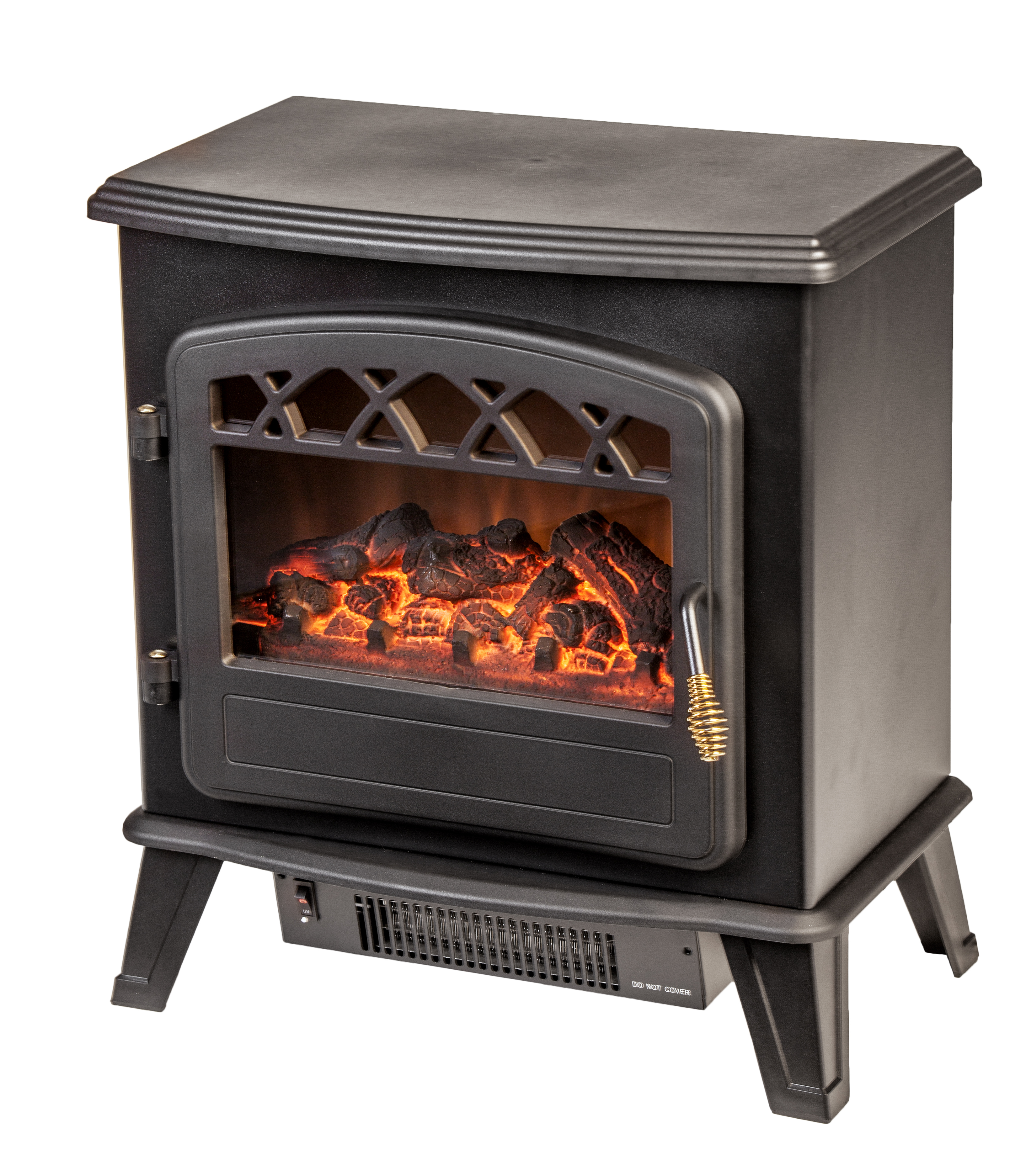 The Stonewall is housed in a casing similar to that of a flat-screen TV and features a multiple-log visual effect that, when used with the unit’s powerful heater, can turn a drab living room into a romantic enclave. A black, tempered glass panel frames the real-log flame effect.