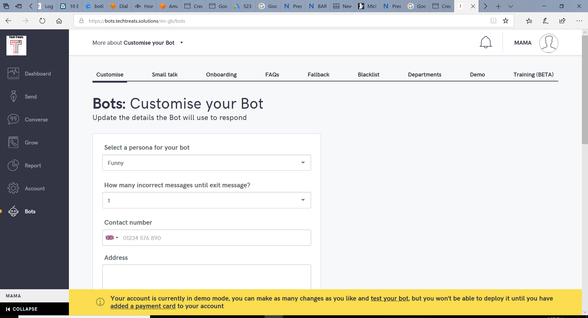 CLARKSVILLE, Md., March 1, 2019 (Newswire.com) - Tech Treats LLC is proud to announce it has added an extremely economical, do-it-yourself artificial intelligence (AI) chatbot (AKA bot) platform to its high-tech offerings for low-tech businesses operating on a modest (or even a very small) budget. To celebrate its launch, now through March 15, 2019, Tech Treats is giving away a free business marketing/branding package worth far more than the price of the introductory monthly subscription. This package includes a motion graphics branding video, animated logo and a press release, and the introductory chatbot subscription price is less than $50/month. In addition, unlike many other companies which charge per user per month, Tech Treats offers a flat fee per account, not per user, potentially saving a tremendous amount on operating costs associated with using AI technology.