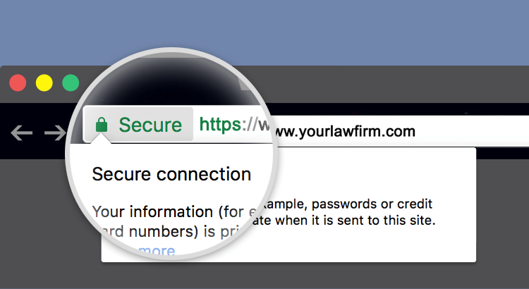 “It may be subtle, and some people may not even notice it, but a little detail like seeing the word “Secure” at the top of the web browser can really create a perception of trustworthiness. It makes you look more reliable and gives people reassurance about submitting their contact information to your site. As you know, trust is probably the single most important aspect of a relationship with a potential client that leads them to hire you. They are facing a scary, complicated, or difficult situation, and they need help from an expert. They surely won’t hire you if they don’t trust you, so you should strive to do anything possible to create trust. Having a secure website is one small factor in a prospective client’s overall perception of you and your law firm, but it’s just another thing can help establish trust, and therefore it’s a wise move that is worth the cost in our opinion.”