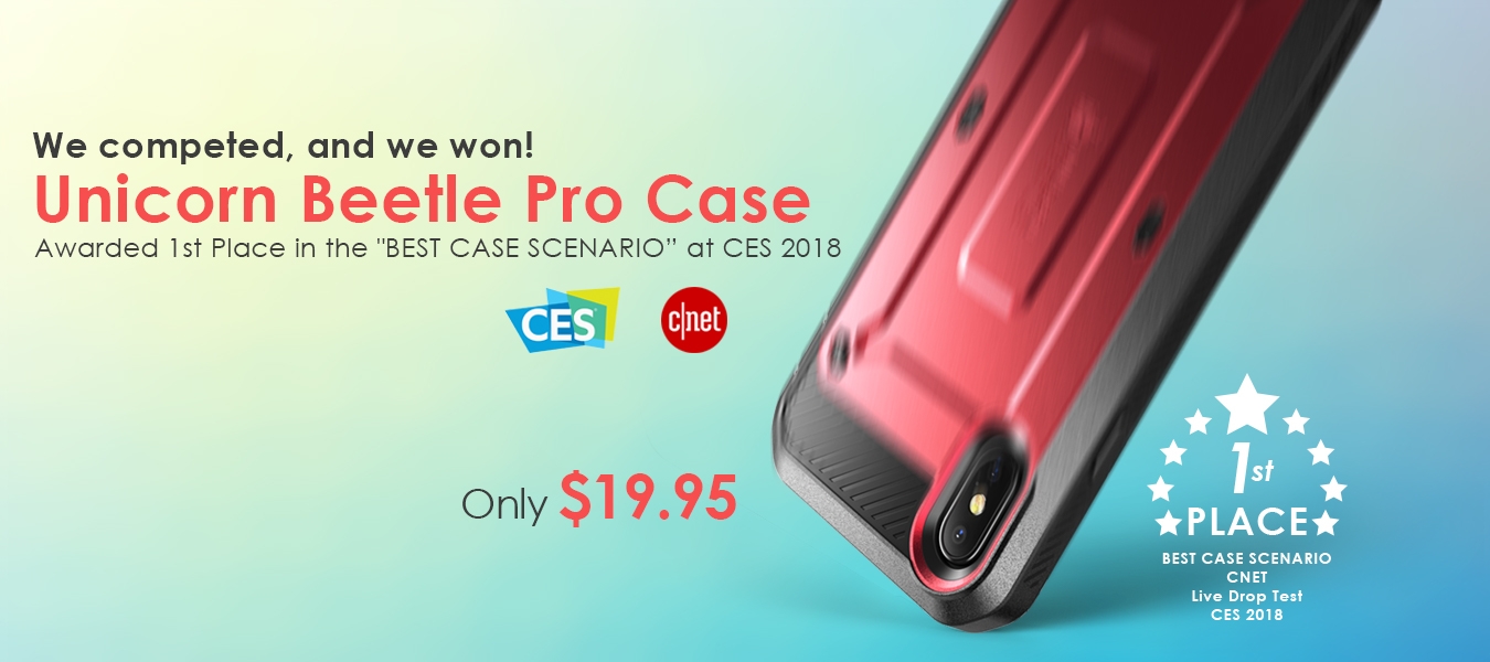 ATLANTA, February 15, 2018 (Newswire.com) - SUPCASE, the leading manufacturer of protective yet affordable cases for smartphones and tablets, is proud to announce that the Unicorn Beetle Pro (UB Pro) took first place in CNET’s “Best Case Scenario” drop test at this year’s Consumer Electronics Show (CES) in Las Vegas, Nevada.