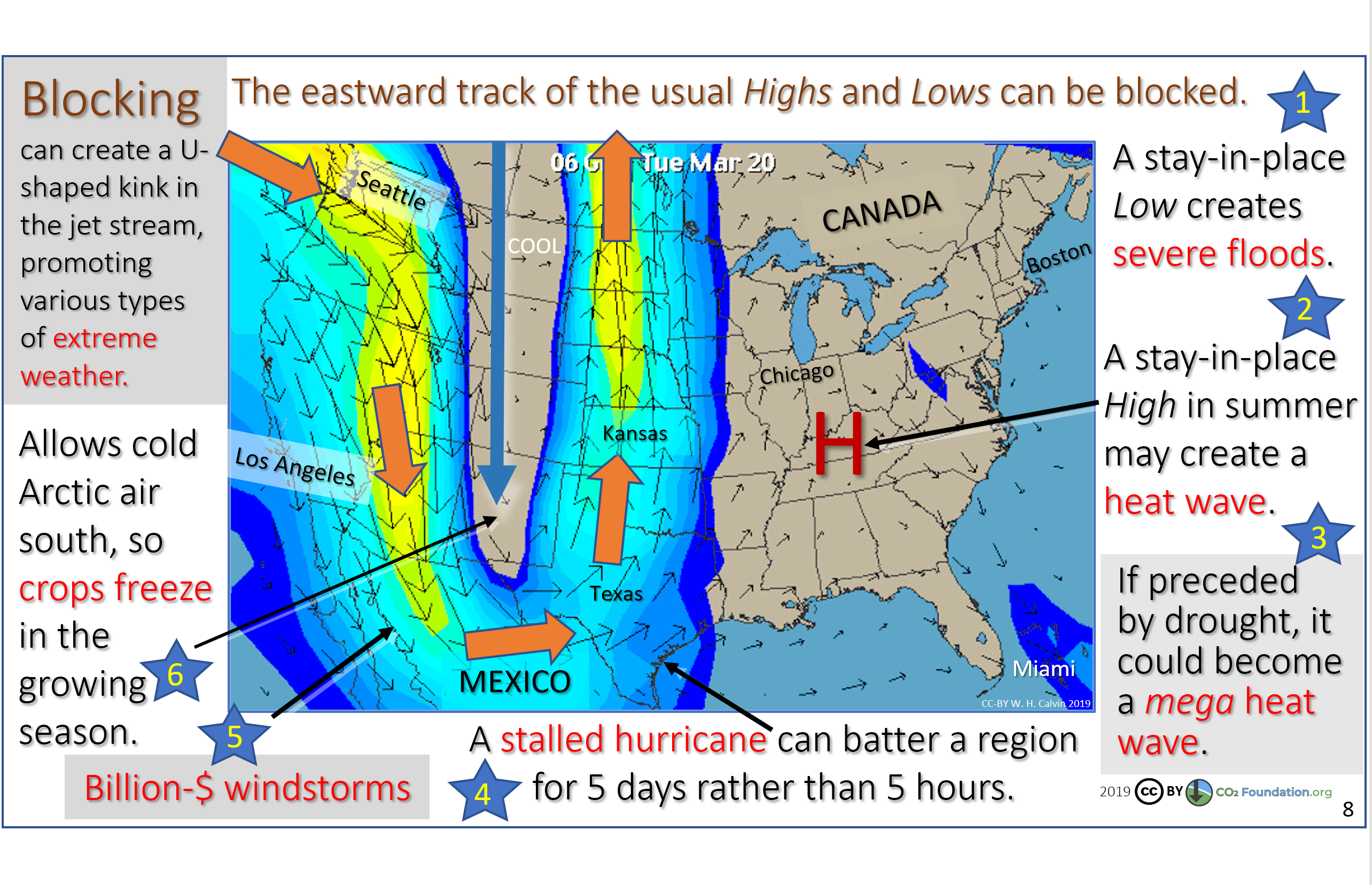 It is not only the number of billion-dollar floods each year, he says, but a similar jump in severity or numbers can be seen for four other types of extreme weather as well. Most are worse than triple. “Severe windstorms are now eight times as common as they used to be before 2003. To judge from firefighting costs, ‘fire weather’ tripled in 2000. Now, it is four times the 1990s numbers.” Then there are the mega heat waves in Europe in 2003 and in Russia in 2010 that each killed about 100 times more people in a week than did 20th-century heat waves. "Most share a common mechanism: weather stalled by a long jet-stream meander.”