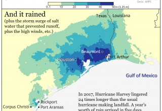 Monday’s flash flood may not join NOAA’s “Billion-Dollar Disaster” club for severe inland floods but, says Dr. William H. Calvin, the president of the CO2 Foundation in Seattle, it shares the same stall mechanism as most of the new extreme weather. “Hurricane Harvey in 2017, for example, would have passed over Houston in five hours if not for a jet-stream blocking event. It lingered for five days instead, 24 times longer, dumping a year’s worth of rain atop all of the storm surge.” Last year, a downpour kept dumping rain on southern Japan for more than two weeks. In D.C., it stuck around all morning.