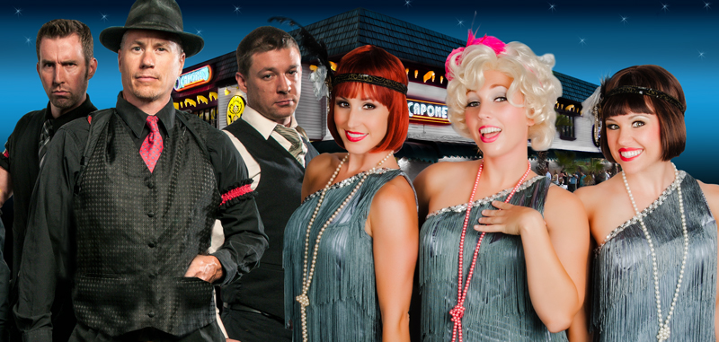 The addition of a Gangster Shootout (during which guests can win prizes) has led to the continued success at Capone’s. The menu has been updated with a full salad bar and hot meat carving station. Seasonal favorites are mixed in, keeping the all-you-can-eat buffet full of popular items. Tickets also include unlimited beverages (including beer, wine and cocktails) plus dessert! Updated scripts and improv audience interaction help keep the award-winning show fresh and fun. No two shows are ever alike!