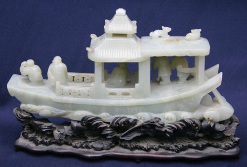 A HEAVY HAND CARVED CHINESE JADEITE SHIP