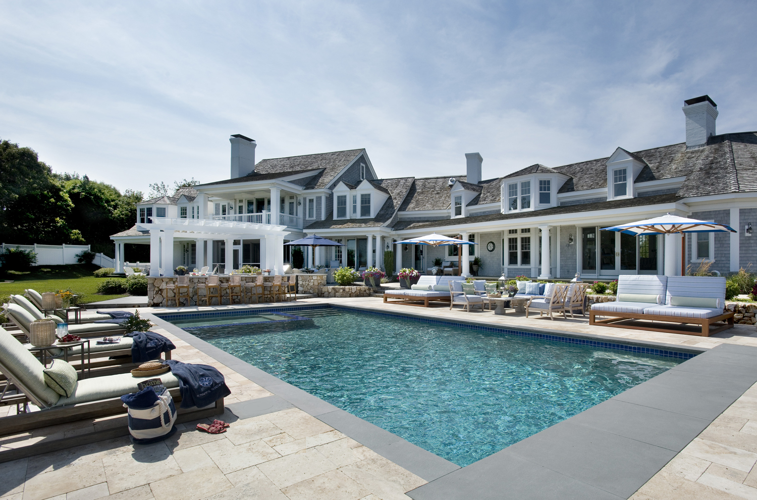 Views of the Atlantic Ocean also shaped the design plan for the award-winning exterior space – which delivers a relaxed but refined backdrop for entertaining. By bringing the comfort of the indoors out with custom details, the team worked with Sudbury Landscape Design to scale down the massive backyard into cozy, intimate, open-air rooms, emphasizing the interplay between form and function.