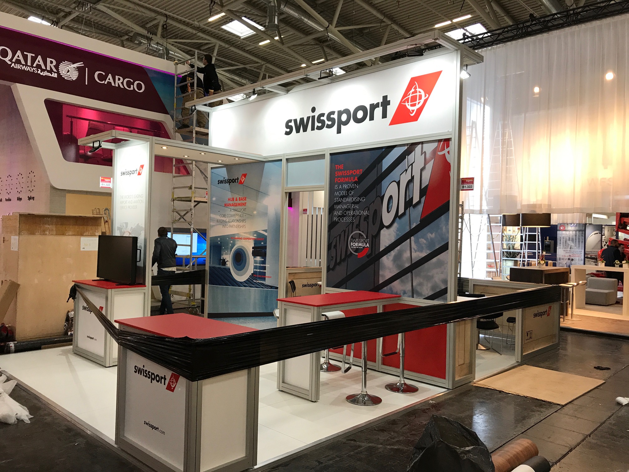 Anyway, having arrived in the city the previous day, Aspect's expert installers made their way to the Messe München in good time on the Saturday morning to assemble Swissport's exhibition stand.