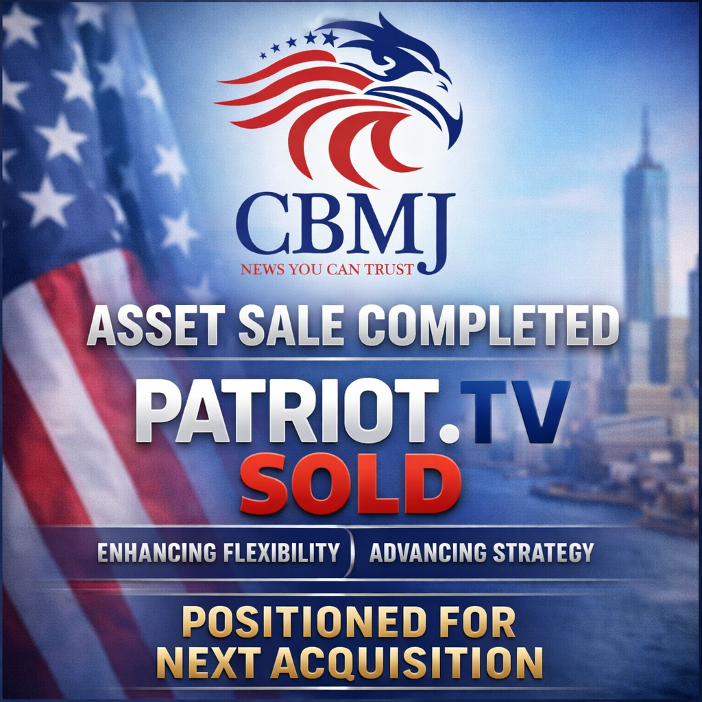 Conservative Broadcast Media & Journalism (OTCID:CBMJ) is focused on pursuing strategic opportunities in media, technology, communications and related sectors as part of its evolving corporate vision. Following the completed sale of Patriot.TV's assets, the Company believes it is better positioned to pursue its contemplated strategic acquisition and broader expansion strategy.