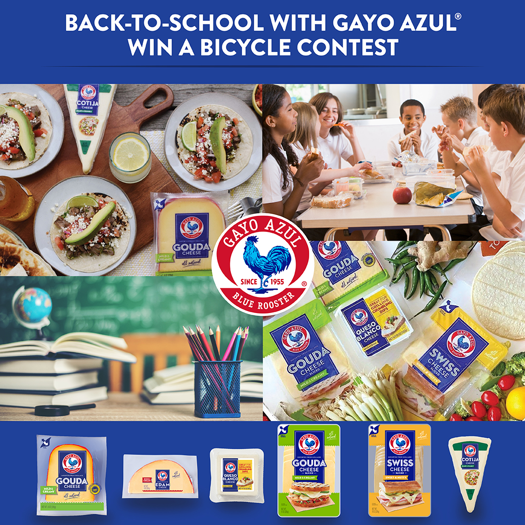 To get more information about Gayo Azul and its products, find where its cheeses are available, and discover new recipe ideas, visit www.gayoazul.com or follow them on Facebook (@gayoazulcheese) and Instagram (@gayo_azul_cheese). For more information about Back-to-School with Gayo Azul® "Win A Bicycle" Contest, go to www.gayoazul.com/promotions.