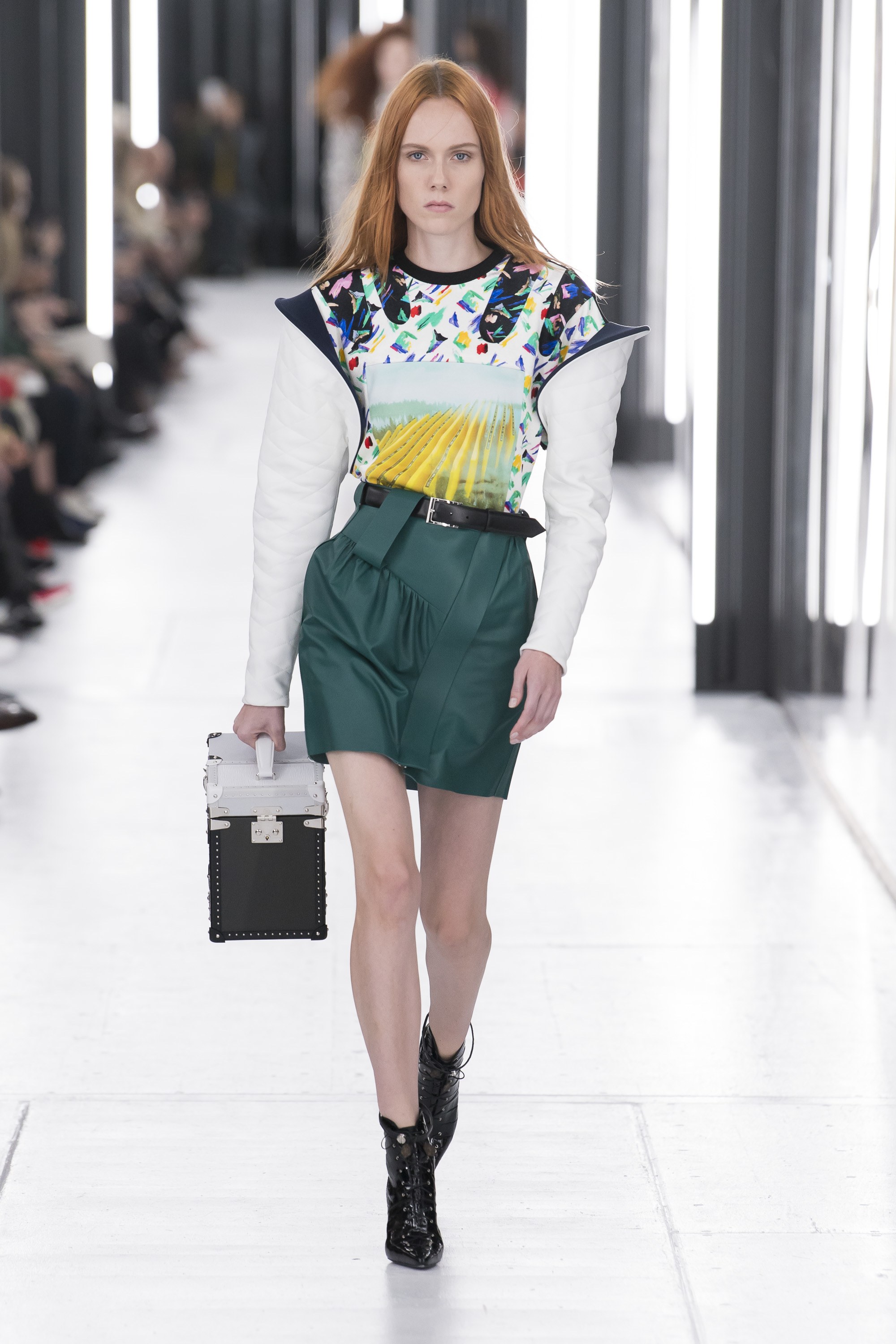 Florent Buonomano, Louis Vuitton artistic director, initially approached Beeple after noticing his work on Instagram. He brought several of his designs to the attention of Ghesquière as they were looking to underscore futuristic abstract landscapes into the line and thought they would be a great fit for the direction they wanted to take. Nine of the “Everydays” pieces were selected and adapted on 13 of the 45 pieces being shown in the collection, mainly on shirts, jackets, and dresses.