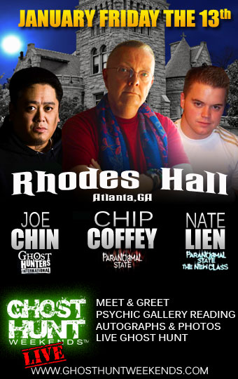 Featured on Syfy Channel's Ghost Hunters Season 6 Episode 24, the Rhodes Hall Castle Museum will be the venue for the evening's events. Located in Atlanta, Georgia, the museum was built in 1904 and multiple reports of paranormal activities have been documented throughout the years. Ghostly visits range from a woman in white to tall man going up and down the Grand Staircase. Other activity include object that moves by themselves and voices throughout the empty rooms.