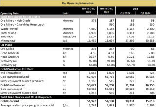 The Company has also made significant progress in improving its working capital position during the quarter, partly due to the cashflow generated by high gold prices and strong production but also from proceeds received under the sale of an option on the Monte Do Carmo project to a subsidiary of Hochschild, which was approved by shareholders on 27th June 2024. At quarter end, the Company has reduced overall current liabilities (payables, loans, and amounts due to the Sellers) by approximately US$10MM from the beginning of the year, with further declines expected in the coming quarters, strengthening the overall financial position of the company. The Company has also seen a significant reduction in costs and corporate overhead to help to improve overall profitability for the future.