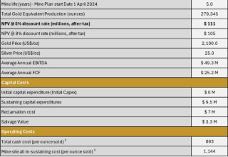 First half of 2024, production of 27,459 GEO has been achieved. The Company is guiding for 2024 total production of between 50,000-60,000 GEO at an All-In-Sustaining Cost between US$1,200-US$1,400/oz.