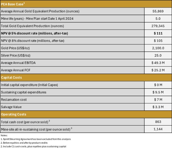 The PEA highlights a robust 5-year mine life using our current inventory of mineralized material. As high-grade material from our Calandrias Norte pit is exhausted, the heap leach at Calandrias Sur and a second potential heap leach at Martinetas will generate strong cashflows, allowing the Company to support continued deleveraging while refocusing efforts on exploration to add additional high-grade ounces to the mine plan, support underground development and expand the life of mine.