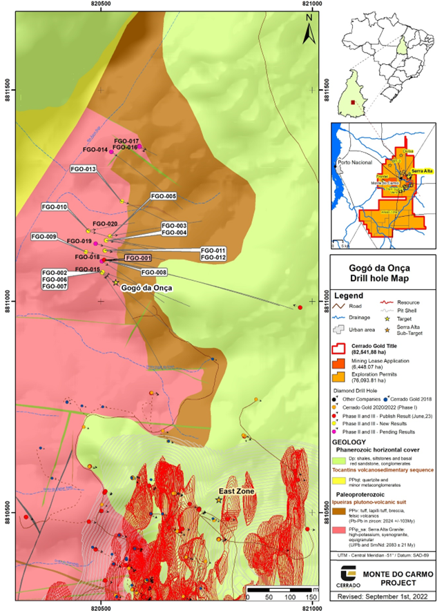 TORONTO, ON, September 26, 2022 (Newswire.com) - [TSX.V:CERT][OTCQX:CRDOF] ("Cerrado" or the "Company") is pleased to announce additional assay results from its Gogó Da Onca ("Gogó") satellite exploration target, being drilled currently at the Company's Monte do Carmo Project ("MDC") located in Tocantins State, Brazil.