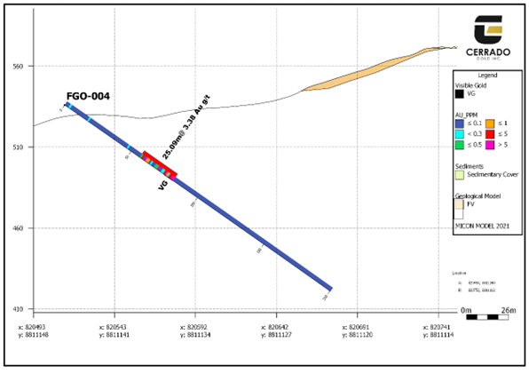- FGO-004: 25.1m @ 3.38 g/t Au from 56.5m;