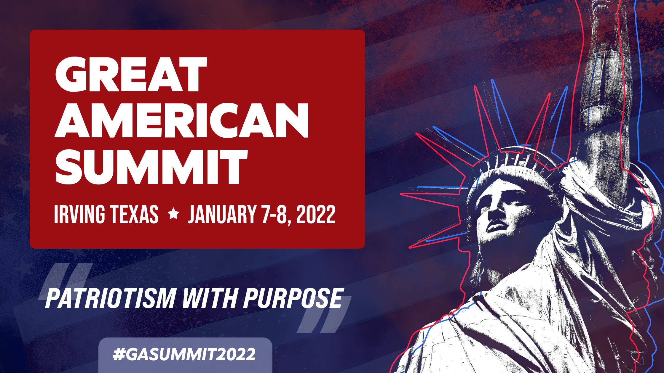The Great American Summit brings patriotism, leadership, and networking to a 2 day live event that celebrates the best of America. The core focus of the event is centered on self, family, community, and country. It's for anyone who believes in our Constitution and its original intent; to protect the hopes, dreams, and liberties of We, the American people.