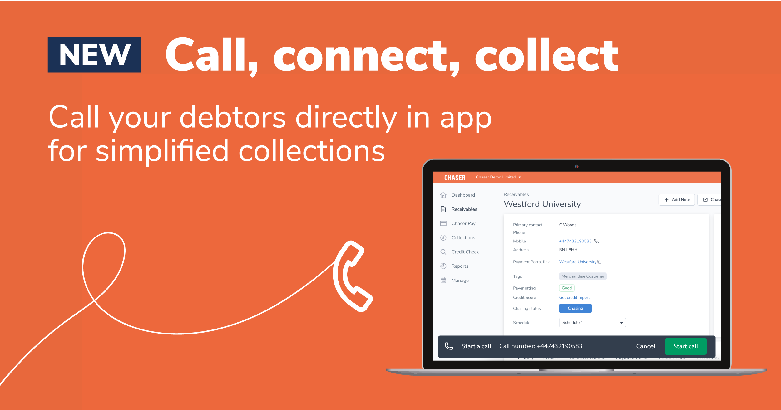 As part of Chaser's commitment to assist businesses worldwide in tackling late payments amidst the current economic challenges and a surge in insolvencies (Guardian, 2023), Chaser is extending its in-app calling feature to users at no cost until June 30th, 2024. This initiative aims to enable more SMEs to benefit from this service without the concern of additional expenses.