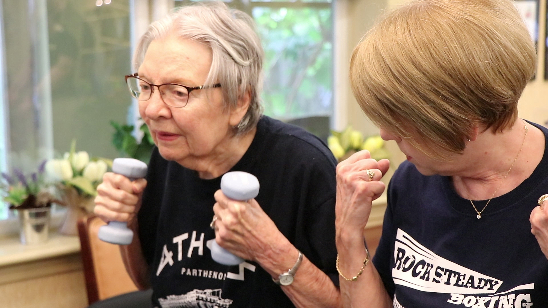 For Robin Moran, whose daily work is all about improving the lives of seniors through meaningful activities and recreation, Rock Steady Boxing has turned out to be one of her most rewarding pursuits. "It touches my heart to see how this can help people improve their daily life, to have the strength and coordination and dexterity to have basic life skills and to slow the progress of this disease."